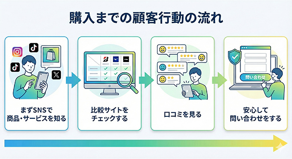 昔は、「検索→クリック→購入」の流れが一般的でしたが、現在は違います。