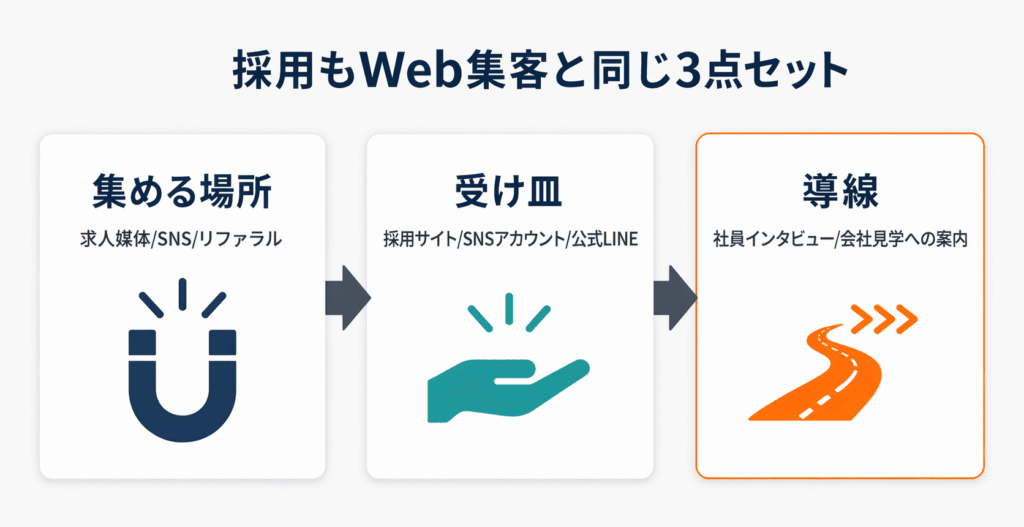 Web集客で効く「広告 × 受け皿 × 導線」という考え方は、そのまま採用にも通じます。