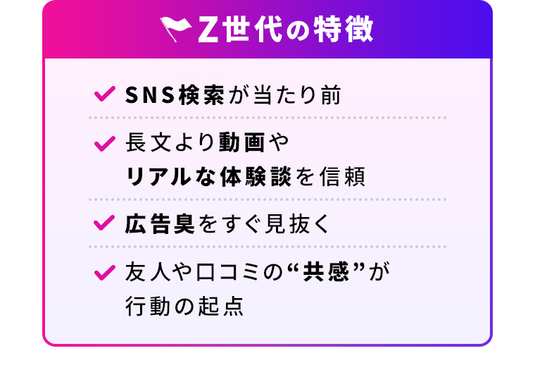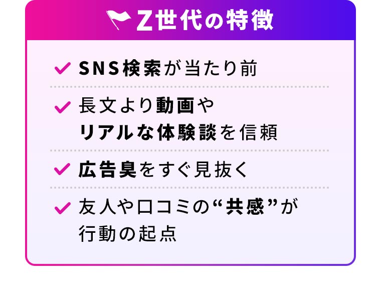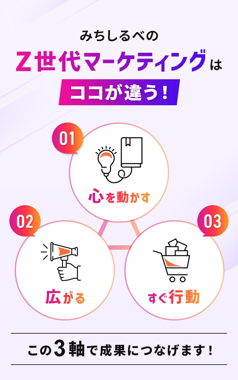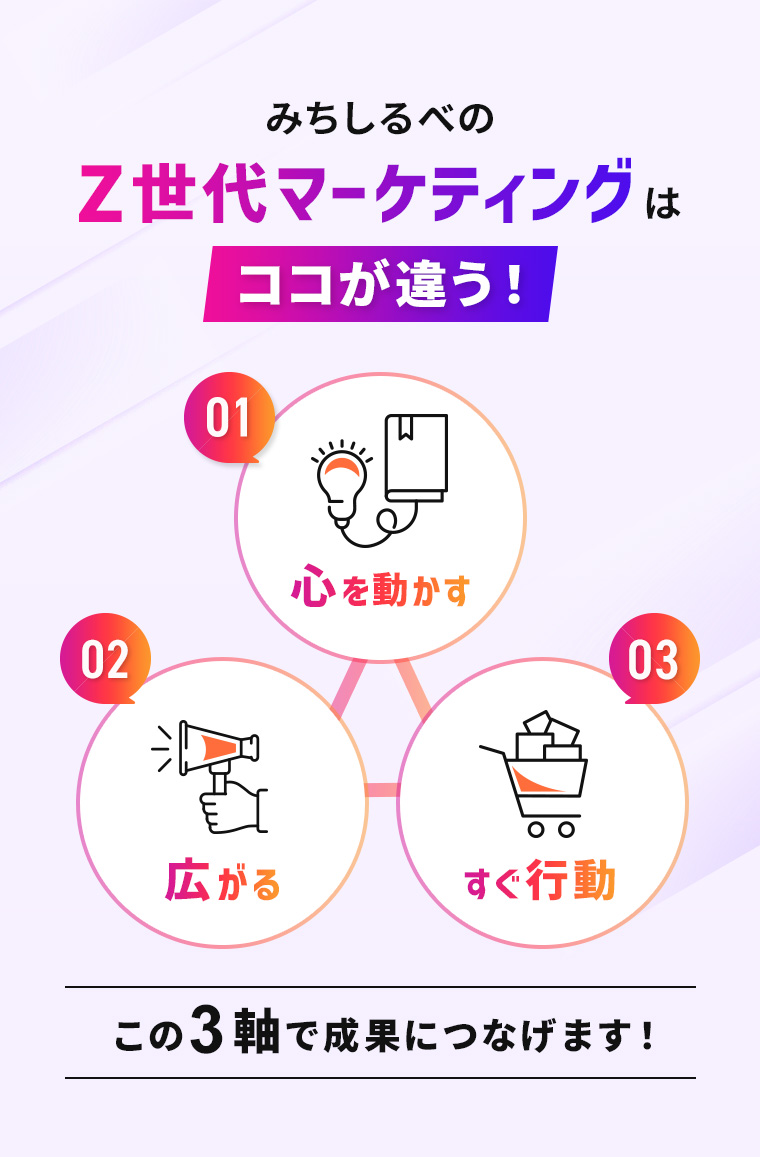 みちしるべのZ世代マーケティングでは、顧客の属性、市場の動向、競合他社など、それぞれの分析データを独自で収集して持ち合わせています。