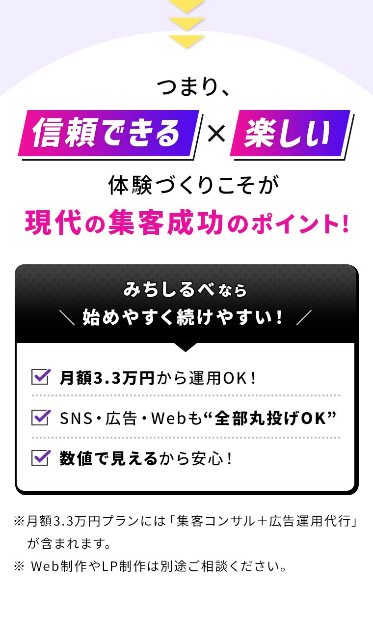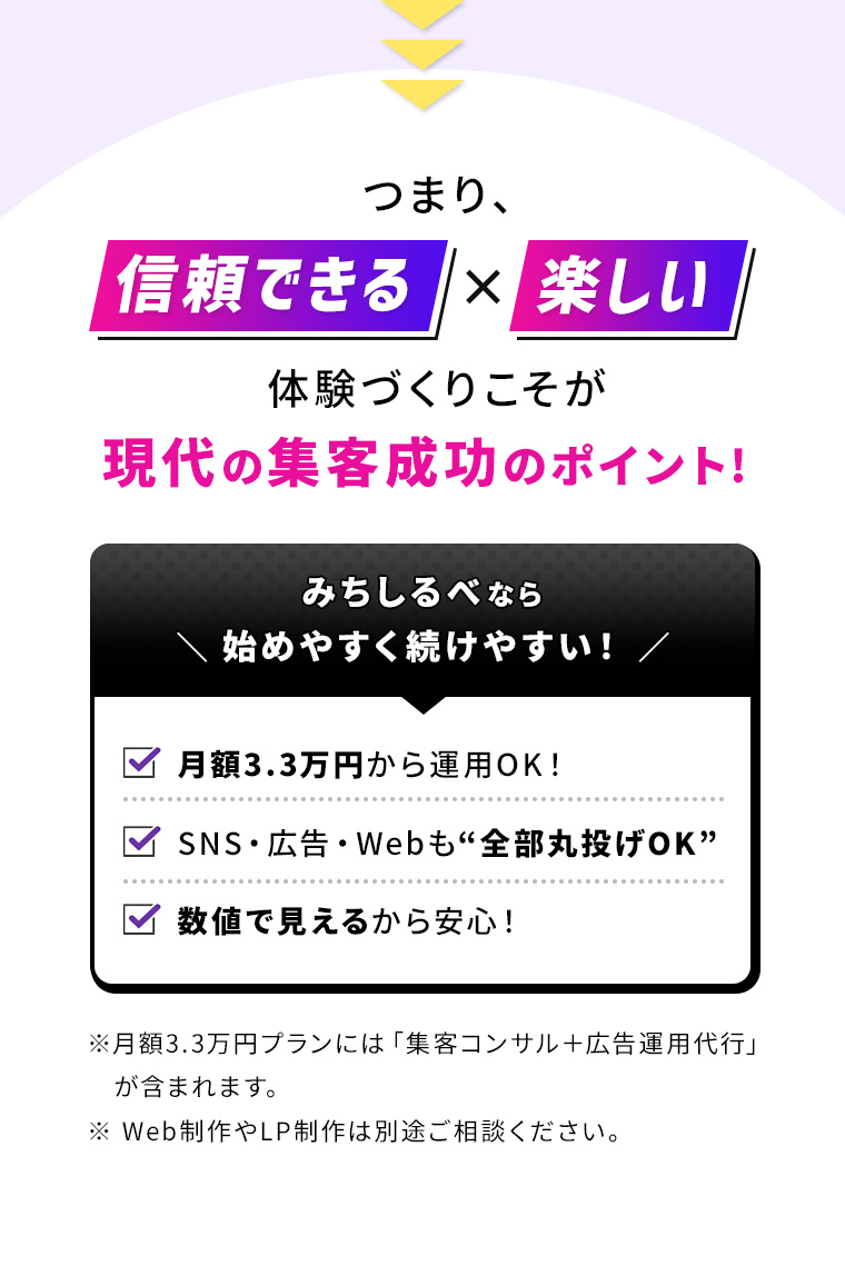 みちしるべのWebマーケティングは、月々3.3万円から開始可能!